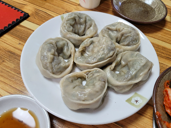 메뉴판 옆에 큼지막하게 능이왕만두 사진을 붙여 놔서 주문을 안 할 수가 없었습니다. 만두 속에 능이버섯이 가득 들어가 있어서 저처럼 버섯을 좋아하는 분들이라면 좋아할 맛입니다.
