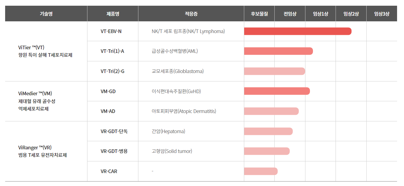 이 기업은 면역세포치료제 개발을 목표로 하고 있고요 현재 파이프라인은 아래그림과 같습니다.