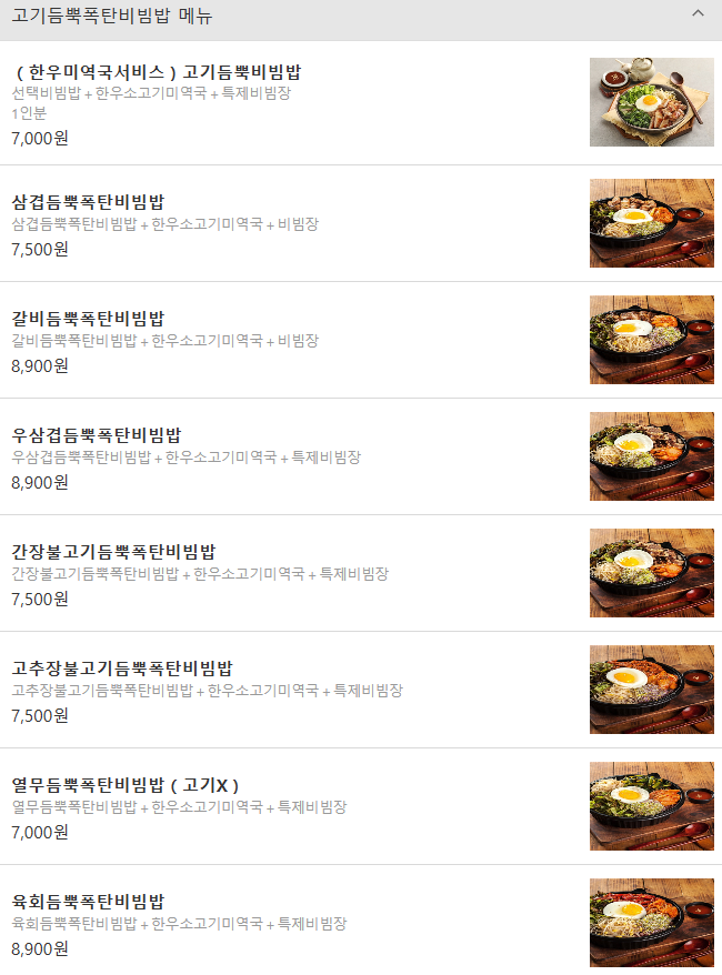 다음에는 비빔밥 메뉴도 한 번 먹어봐야겠습니다. (옆으로 넘기면 더 많은 메뉴를 보실 수 있습니다)