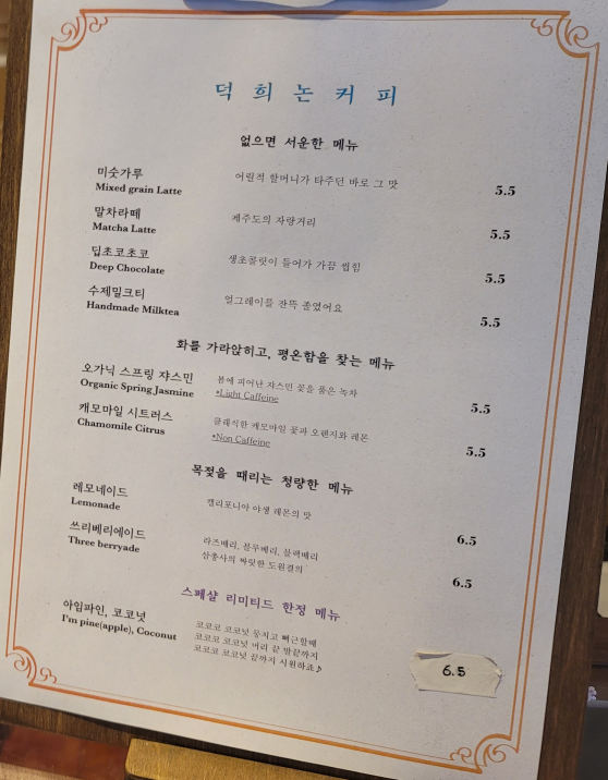 2. 덕희커피 내부 및 메뉴