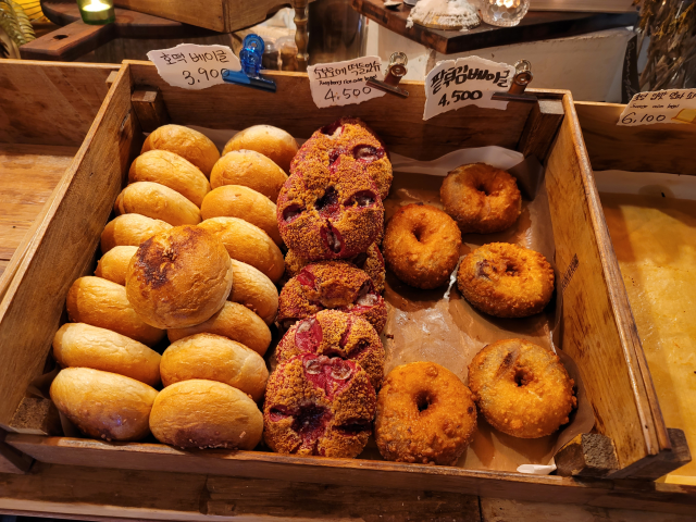 동화 속의 과자로 만든 집에 온 기분이 느껴지는 따뜻한 느낌의 인테리어와 1층을 가득 채운 베이글과 디저트들이 뭘 먹어야 할지 고민하게 만듭니다.