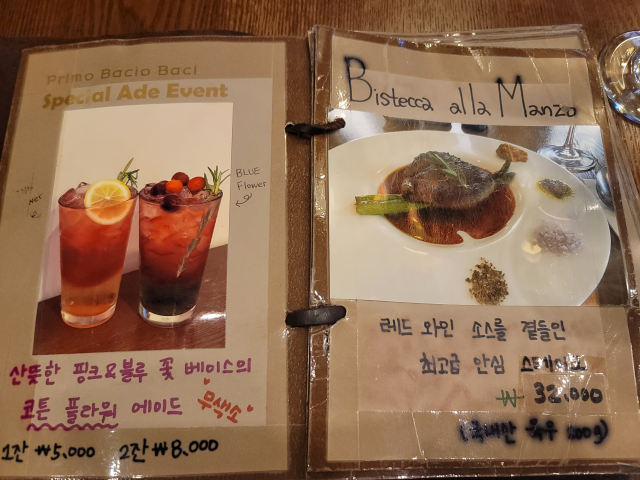 2. 프리모바치오바치 메뉴판