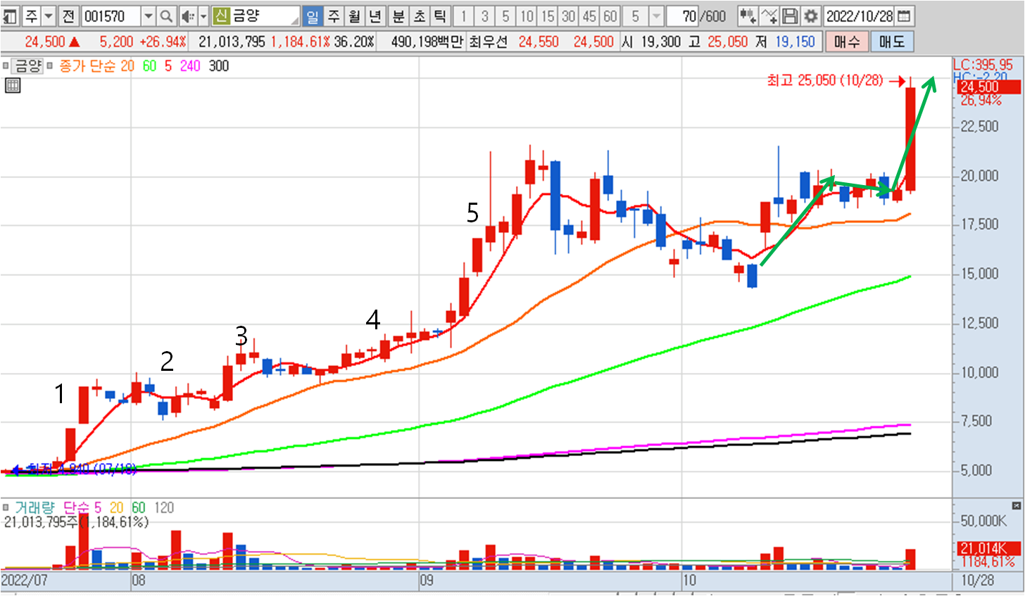 삼사개월만에 5배 가까이 급상승한 모습을 보여주고 있는데, 바닥에서 상승5파동을 그린 후 쌍봉을 만들고 5/20일 데드크로스가 나면서 하락하나 싶었지만 지속적인 리튬 이슈와 가격 상승 및 리튬광산 개발 건으로 인해 다시 상승 탄력을 받아 현재 신고가를 만들었네요