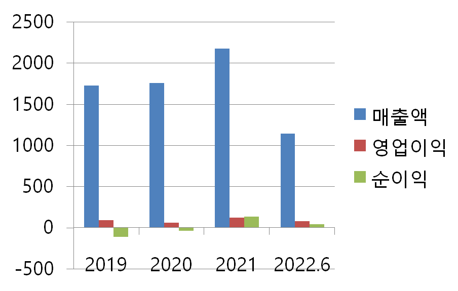매년 매출과 영업이익이 증가하고 있고 올해도 2분기에 벌써 작년대비 매출은 16.7% 증가한 606억, 순이익은 271% 증가한 22.3억으로 회사 자체가 탄탄하다 보니 신사업을 진행하는 데 있어서 전혀 무리가 없어 보입니다.👍