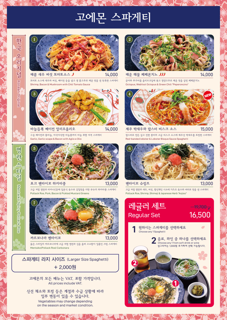 홍대 AK몰 맛집인 요멘야 고에몬의 시그니처이자 인기 메뉴인 수플레 오믈렛 멘타이꼬(명란) 리조또를 비롯하여 여러 베스트 메뉴 소개 팜플렛이 있었고, 고에몬만의 특별한 자부심에 대하여도 설명이 나와 있었는데요.