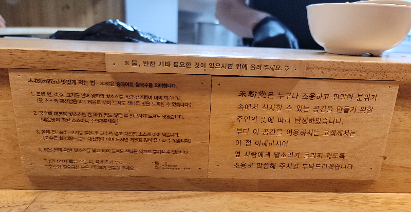 이렇게 테이블 앞에는 미분(쌀국수)를 맛있게 먹는 방법도 친절하게 적혀 있습니다.