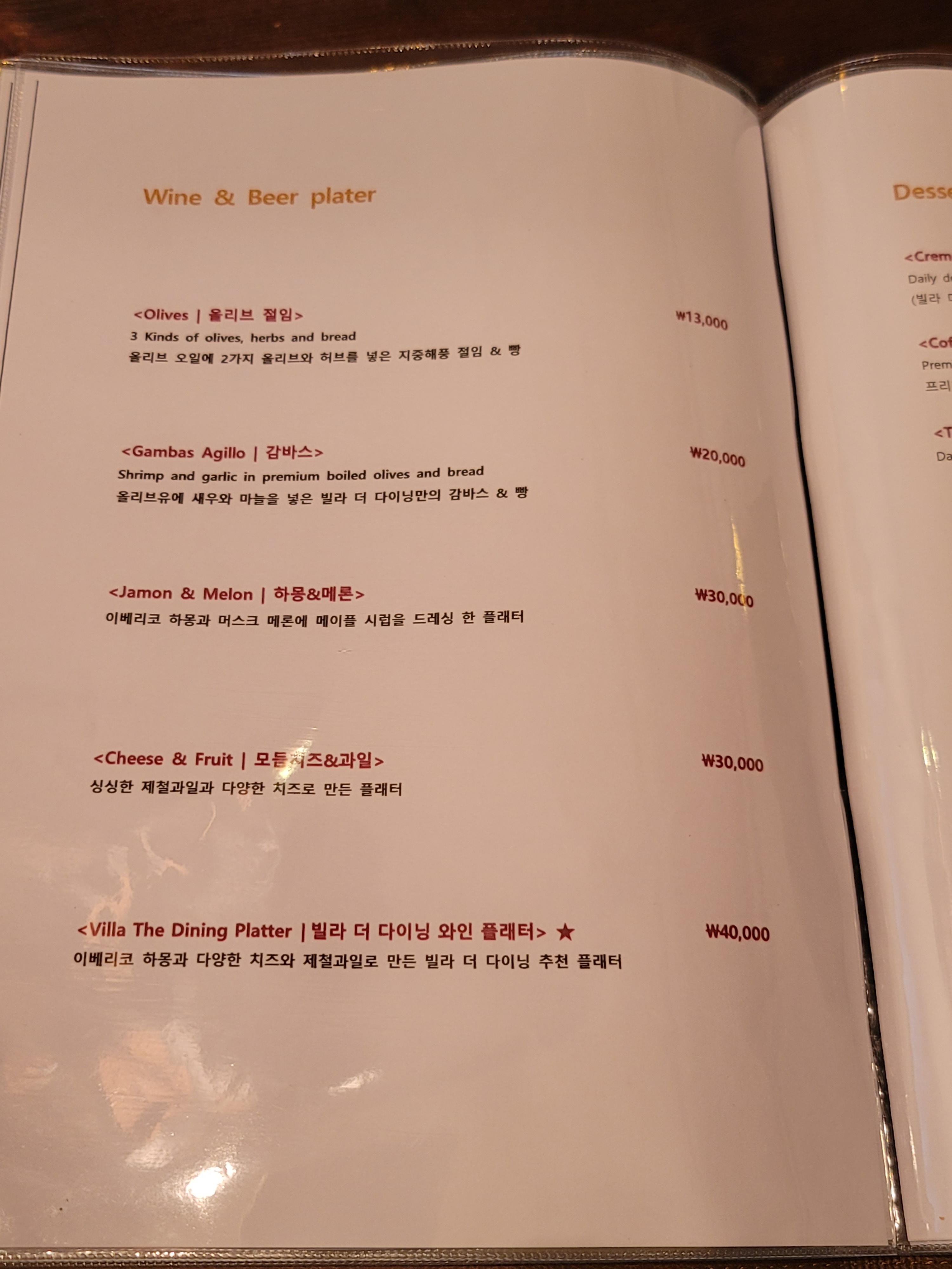3. 빌라더다이닝 메뉴판 및 원산지 표지판