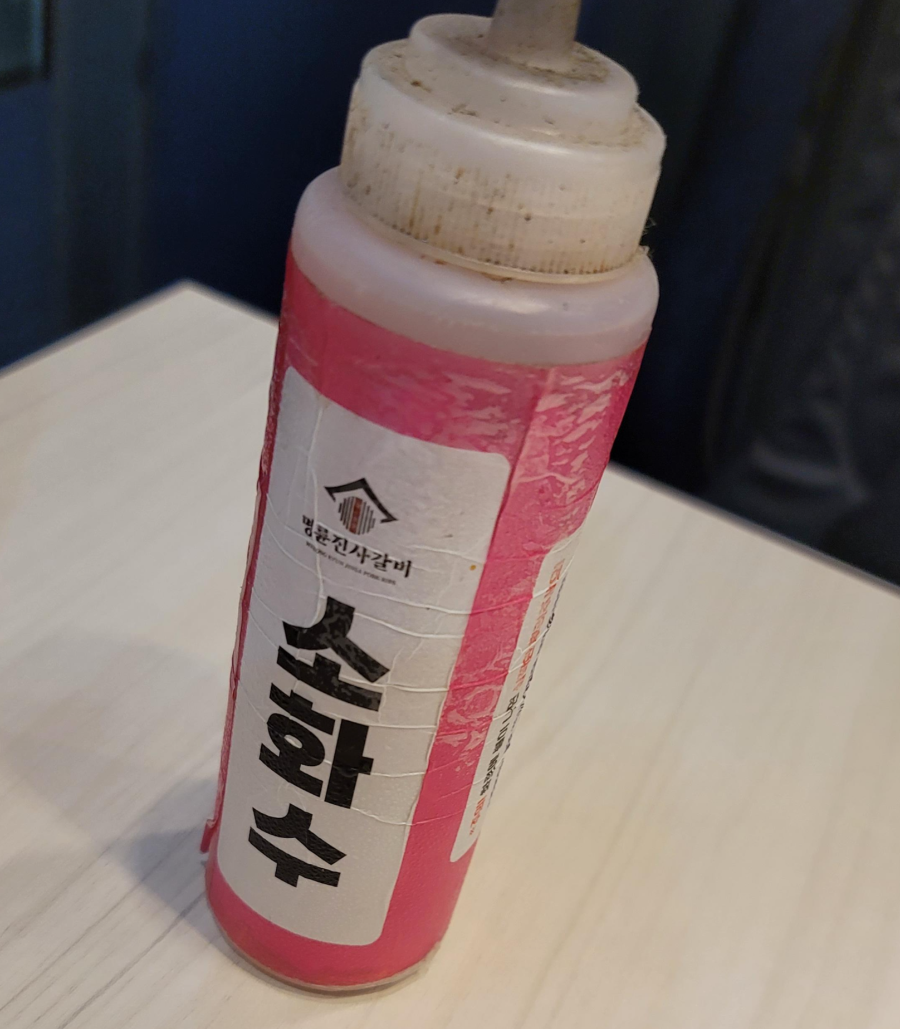 직원분이 사용 방법을 설명해 주기도 하지만 이렇게 옆에 어떻게 사용하는지 적혀 있습니다. 실제로 고기 구우면서 불이 가끔 올라오려고 할 때 살짝 뿌려주니까 바로 꺼지더라고요. 이런 세심한 부분까지 챙긴 명륜진사갈비 대박.