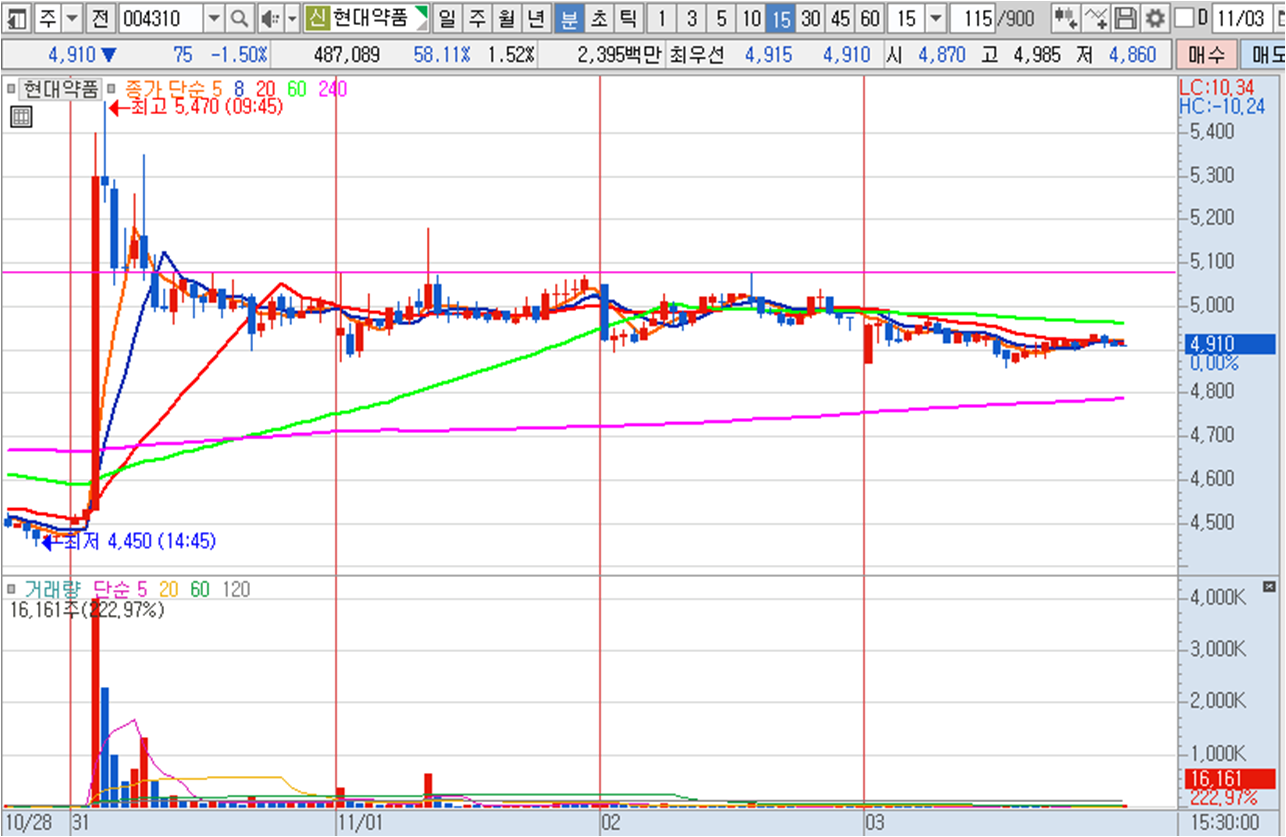 이렇게 다양하고 이슈가 큰 아이템을 여럿 가지고 있는 현대약품의 차트를 한번 봐볼까요