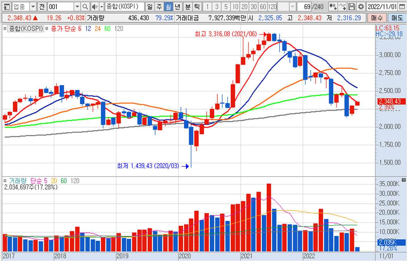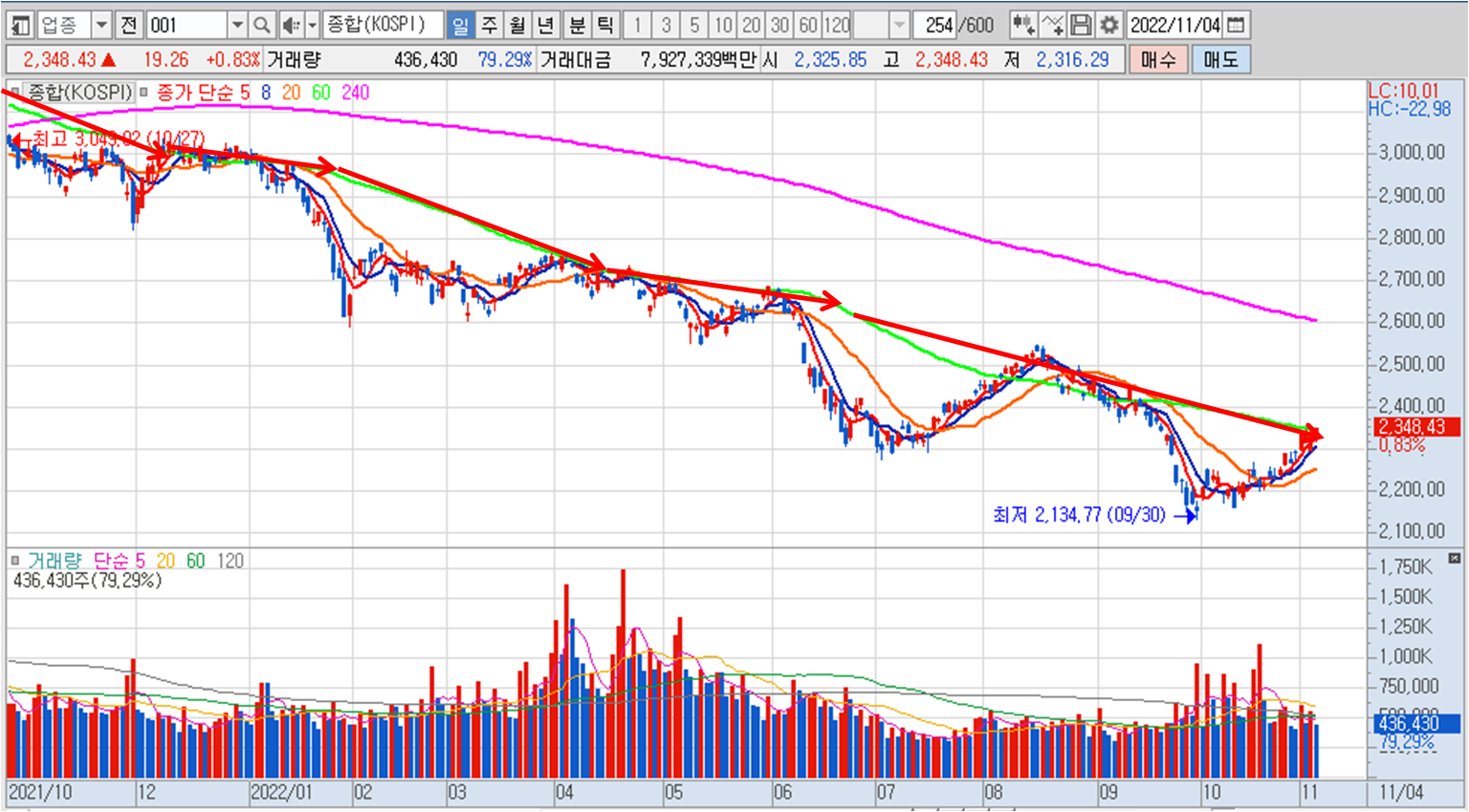 | 국내지수 차트분석 코스닥 현재 위치와 앞으로의 방향은? (1) | 2022.11.06 |