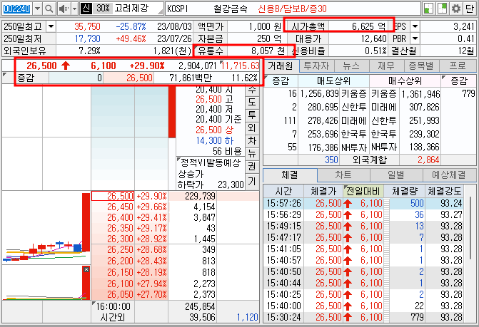 1. 고려제강 주가 호가창 기본 정보(테마/시가총액/유통주식수/거래량/거래대금)