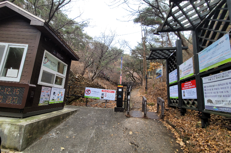 대호아파트 방면으로 진입하면 초입에 '대호아파트 - 대성문' 코스와 '대호아파트 - 구기탐방지원센터' 코스 탐방로 안내판이 있으니 족두리봉을 지나 향로봉과 비봉 및 승가봉까지 등산하실 분들은 참고하셔 될 코스입니다.