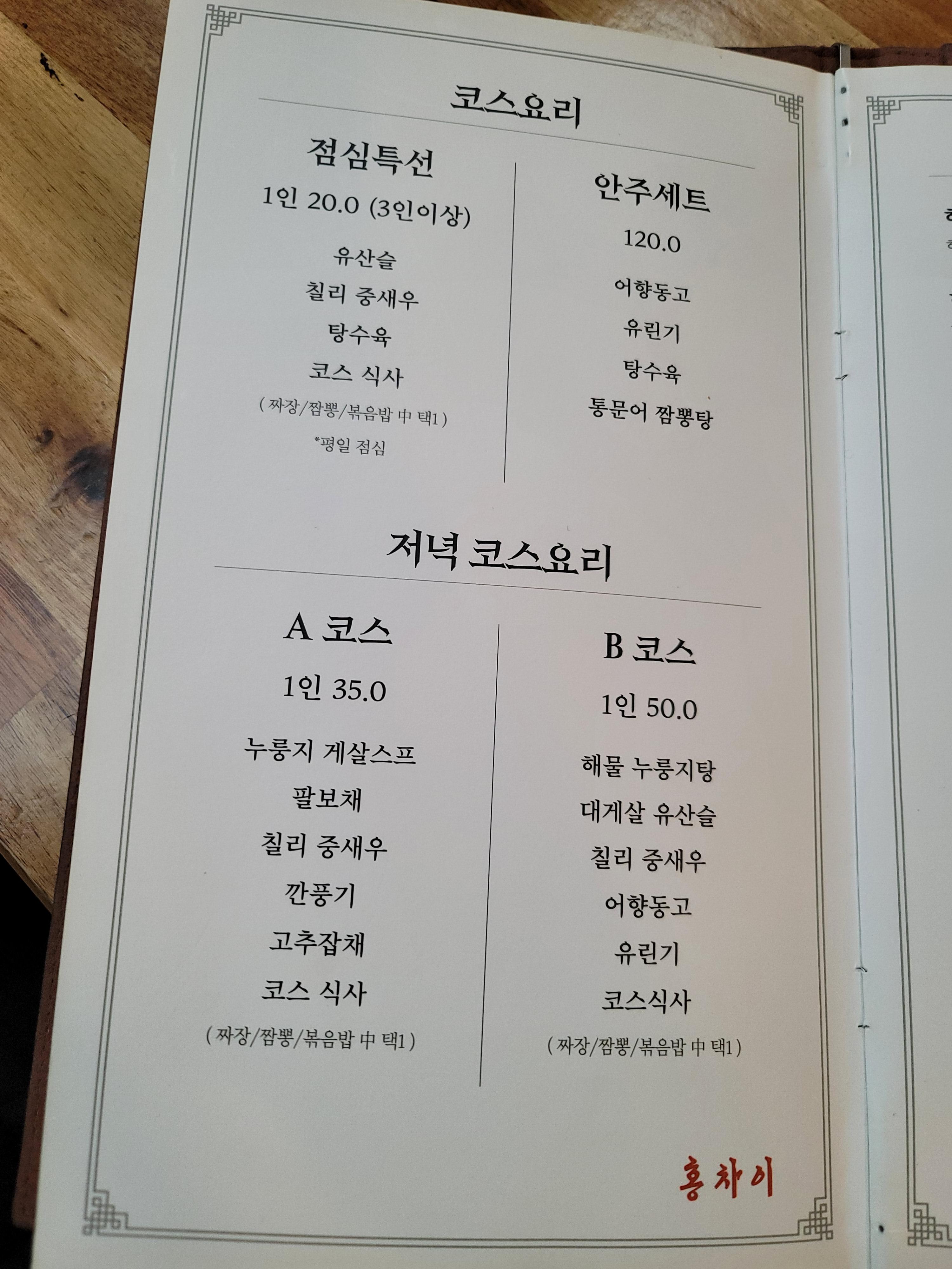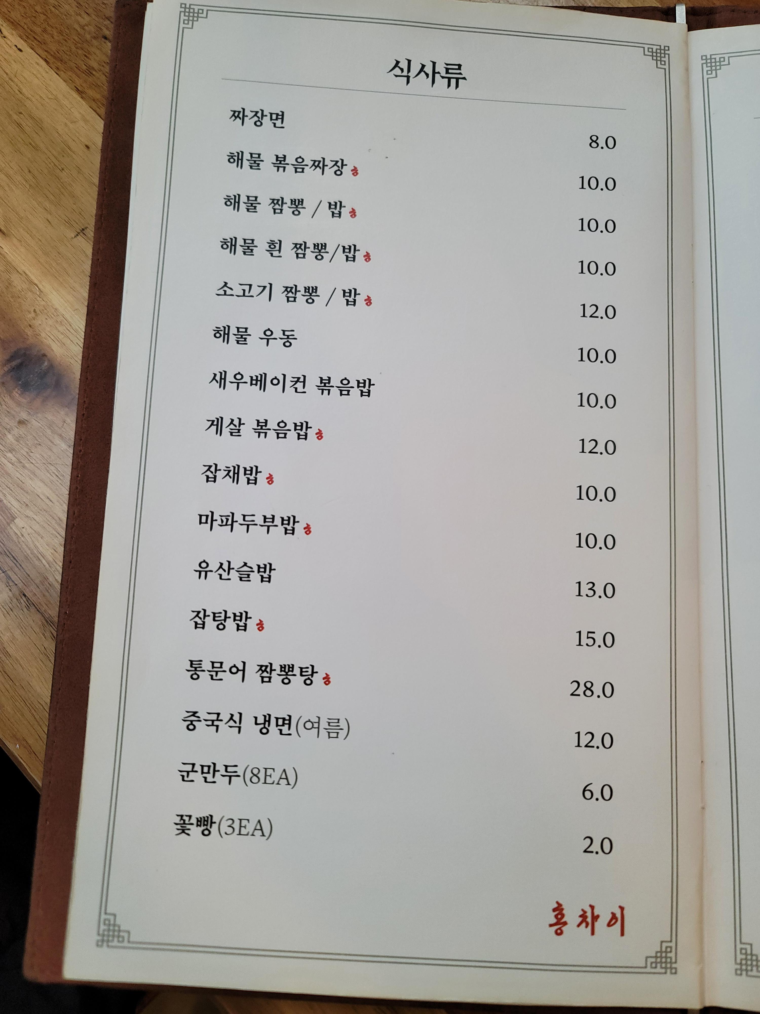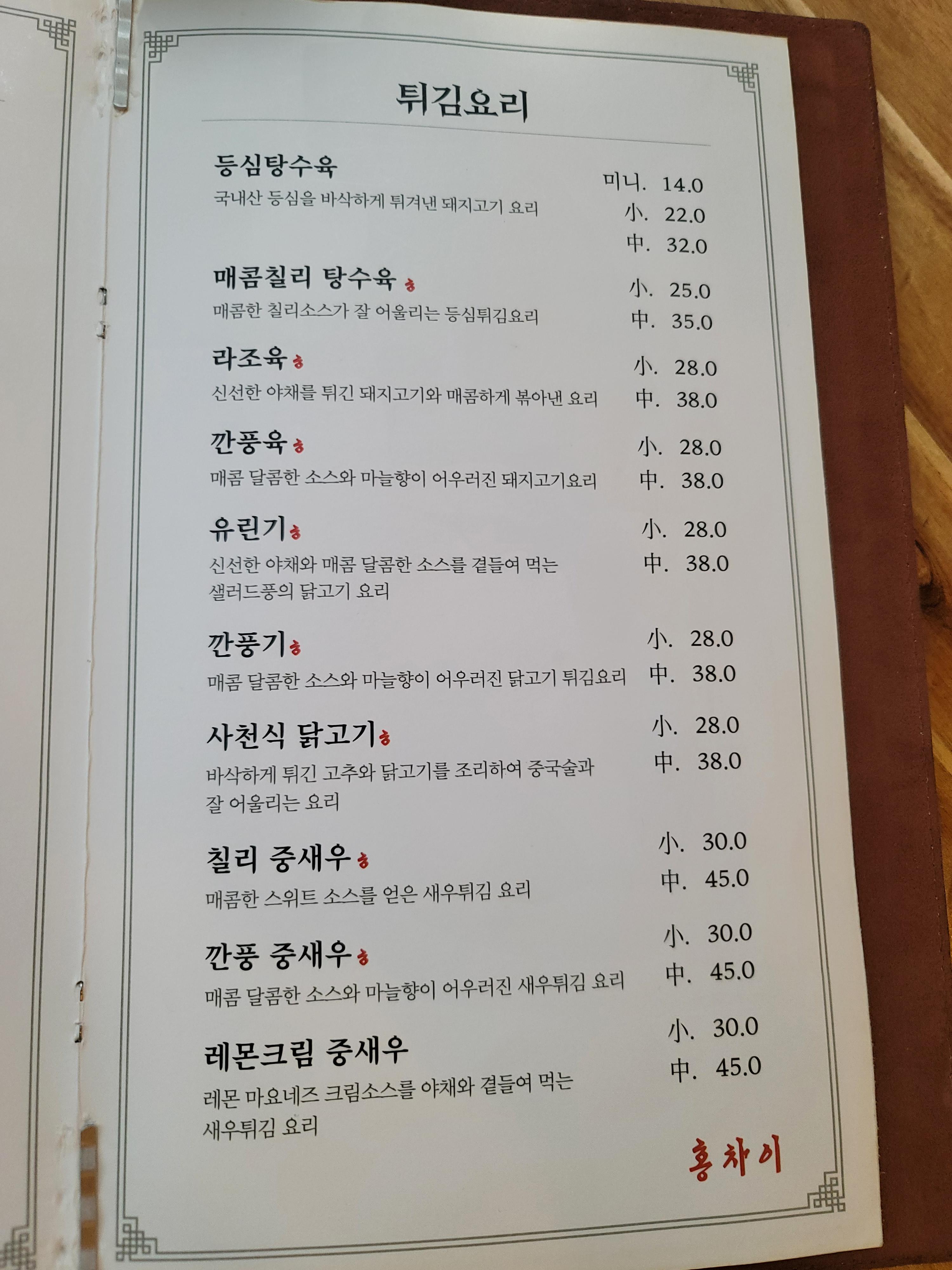 메뉴도 다양하게 많았는데요. 저희는 짜장면과 해물 짬뽕, 국내산 등심으로 만든 등심 탕수육 미니 사이즈를 하나 주문했습니다. 보통 탕수육은 소자부터 있는데 홍차이는 미니 사이즈가 있어서 좋더라고요.