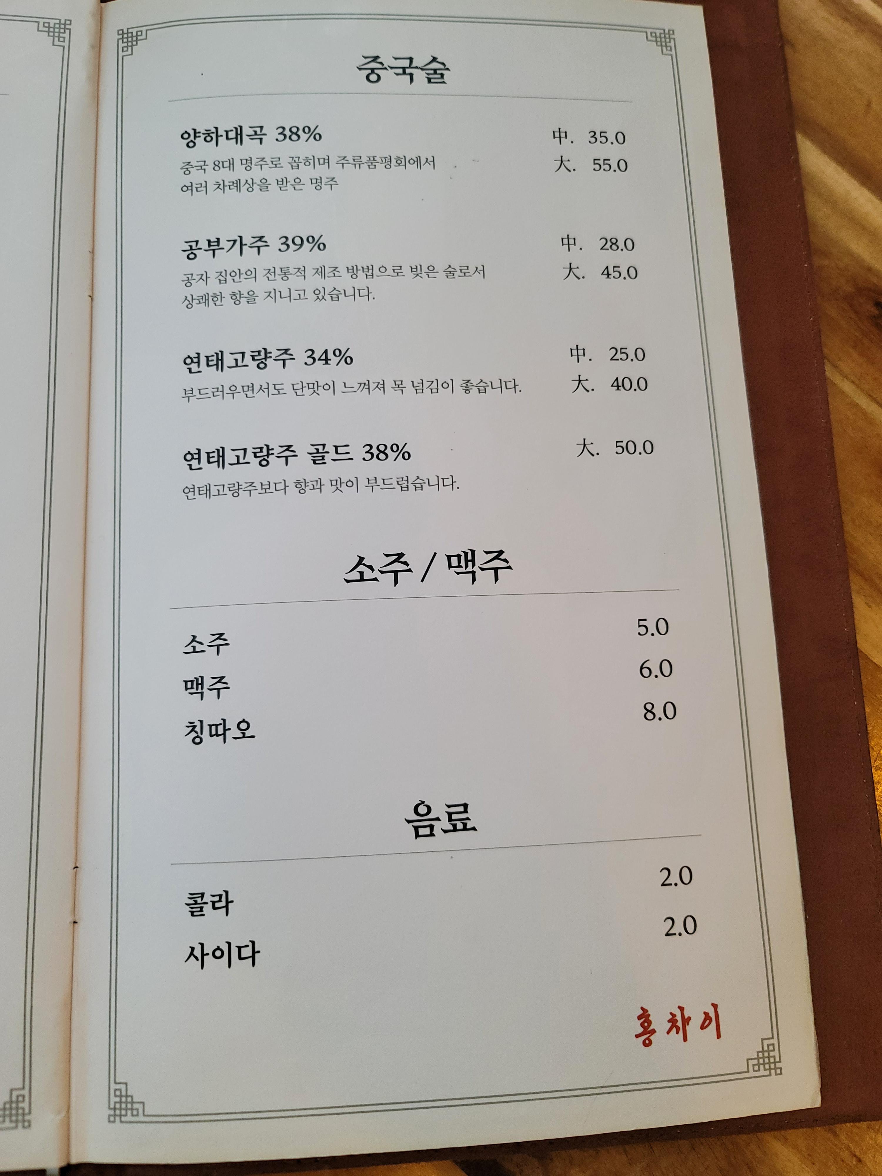 2. 홍차이 내부 및 메뉴판