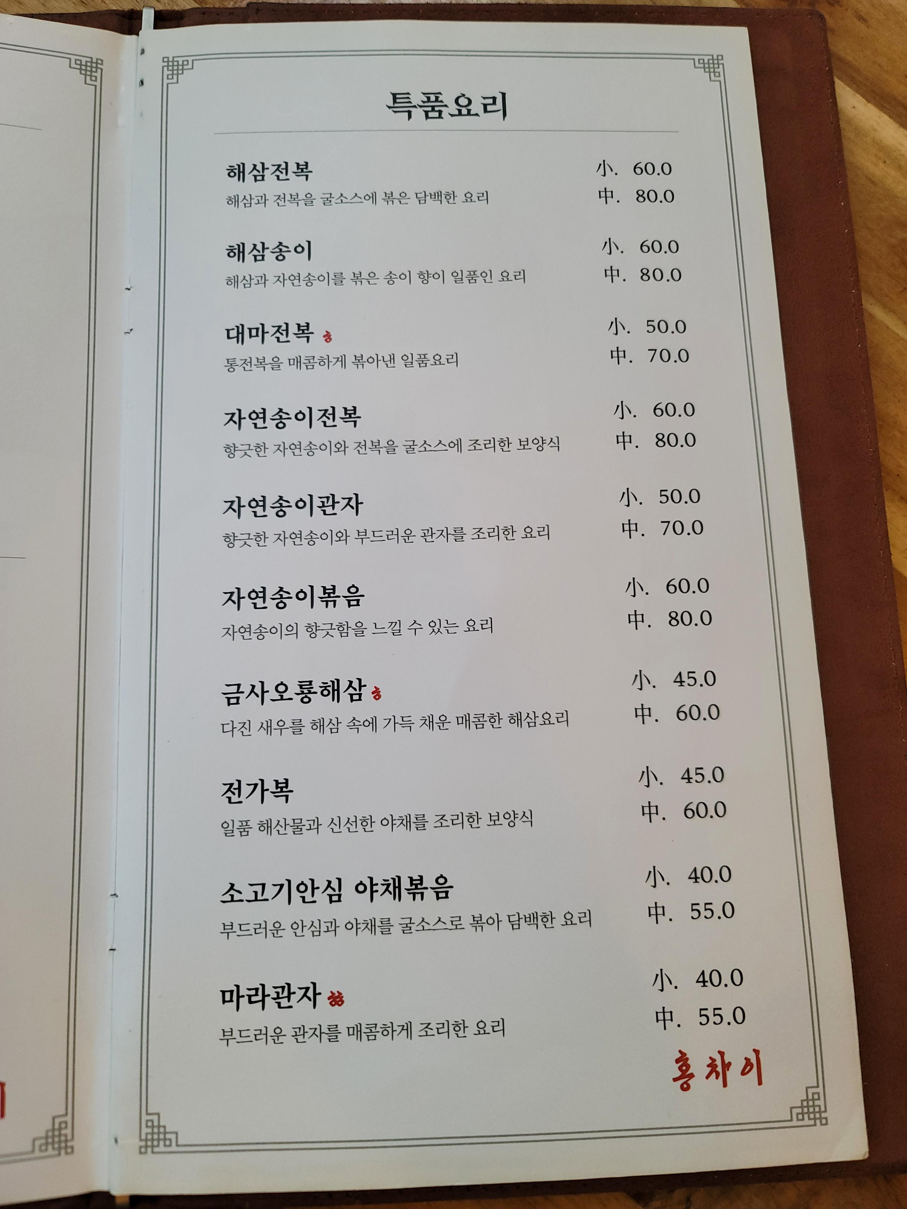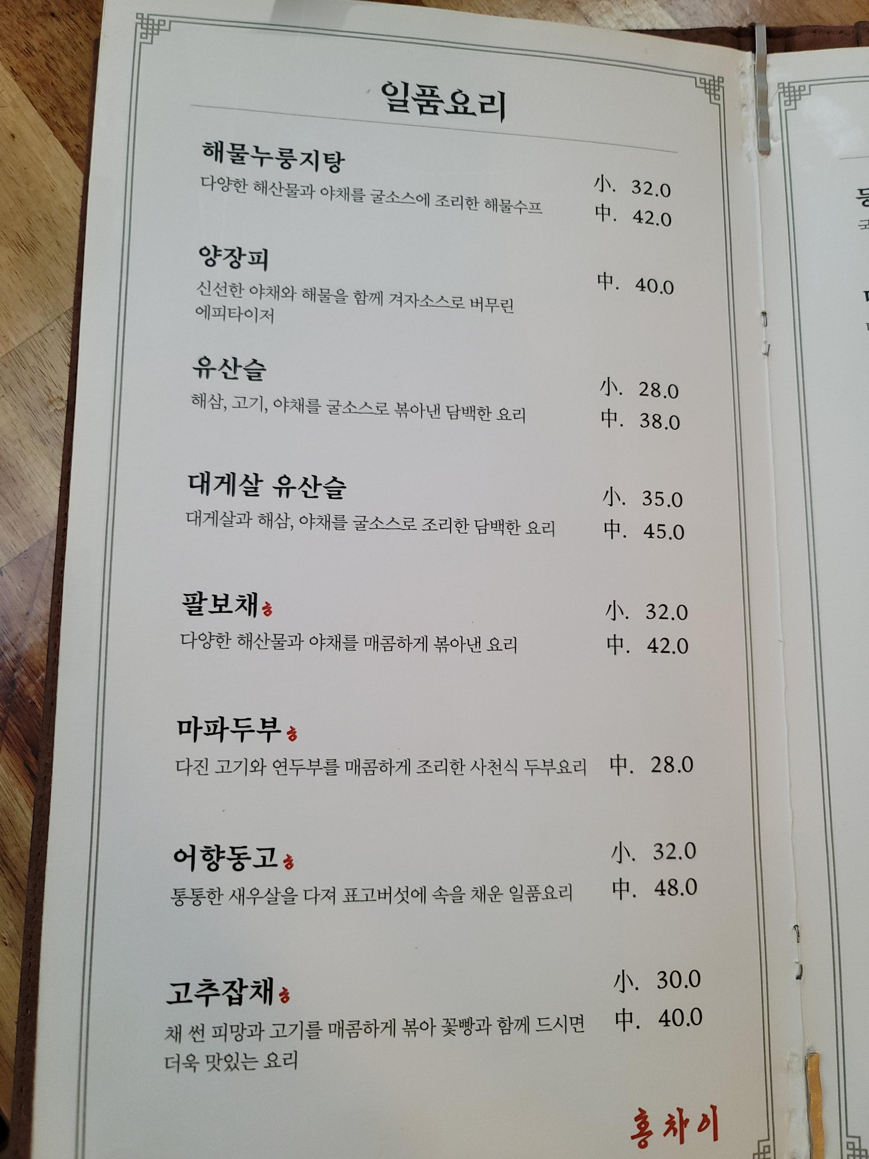 입구에서 정면으로 테이블들이 있었고 오른쪽 사진처럼 안쪽에 또 공간이 있는 구조였습니다. 테이블은 많지 않지만 중간이 아닌 벽과 창문쪽에만 테이블이 있어서 그냥 배달 전문 중국집이 아닌 정말 중식 레스토랑에 온 기분이 드네요.