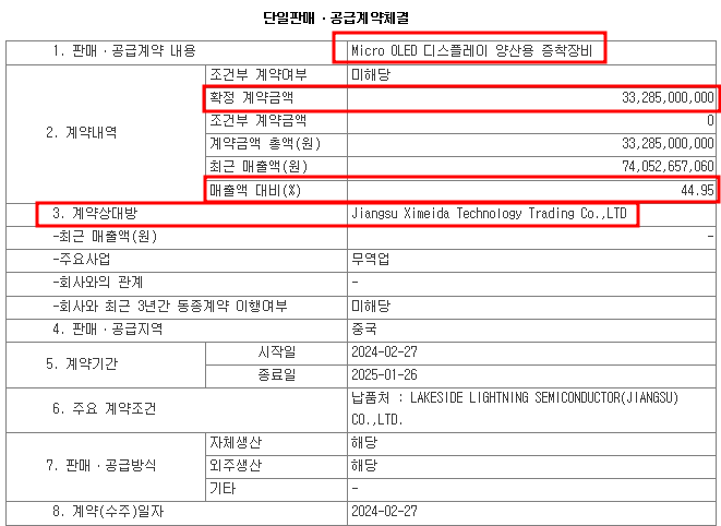 이 외에도 선익시스템은 삼성 SDI와 Jiangsu Ximeida 등과 OLED 증착장비 공급 계약을 맺으면서 올해 상반기에만 1조 원이 넘는 수주를 올렸다고 하니 주가가 오르는 것도 이해가 됩니다.