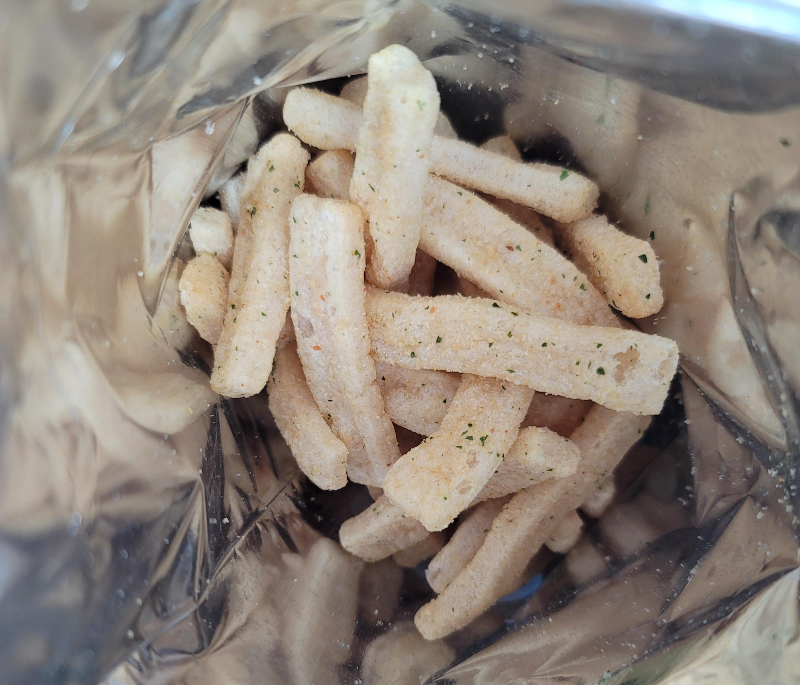 먹태깡 과자 모양은 긴 네모 모양으로 사진에 보이는 것처럼 구멍이 송송 뚫려 있어서 크런치한 식감을 확 살려주더라고요.