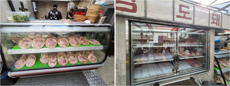2층에 올라오면 이렇게 주방과 숙성되고 있는 맛있는 돼지고기들이 반겨주는데 아는 맛이라 또 먹으러 가고 싶어 지네요!
