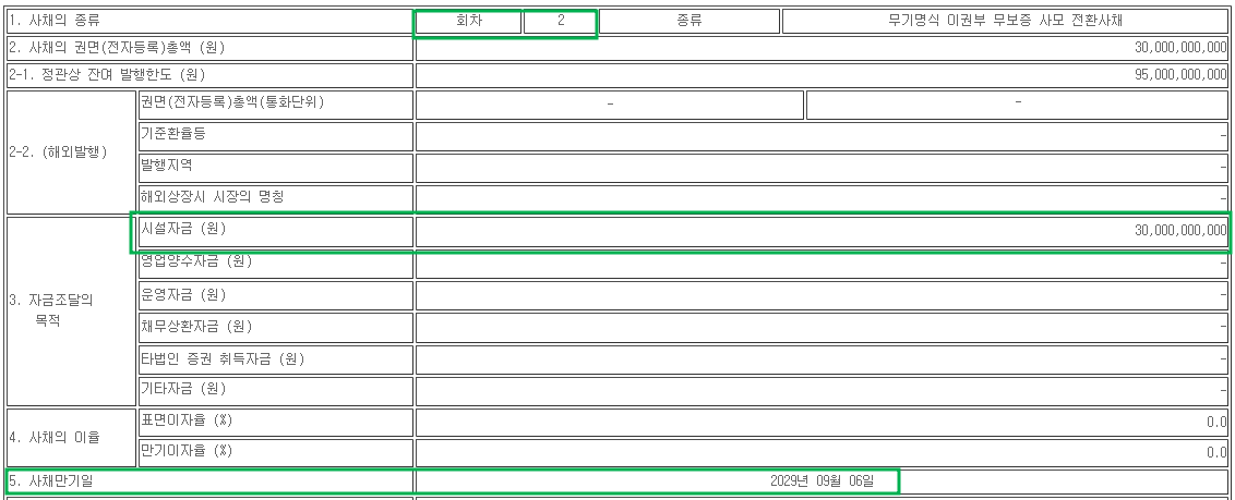 - 시설자금 목적으로 300억 원 규모의 전환사채(CB)를 발행