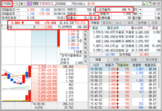 <우정바이오 주가 상한가 이유 및 차트 전망 분석>