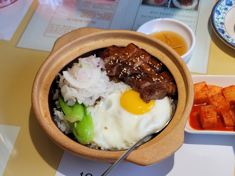 부드러운 차슈와 계란 후라이를 밥과 청경채와 함께 비벼서 먹는데 우육면 국물하고 끝내주게 잘 어울렸고요.