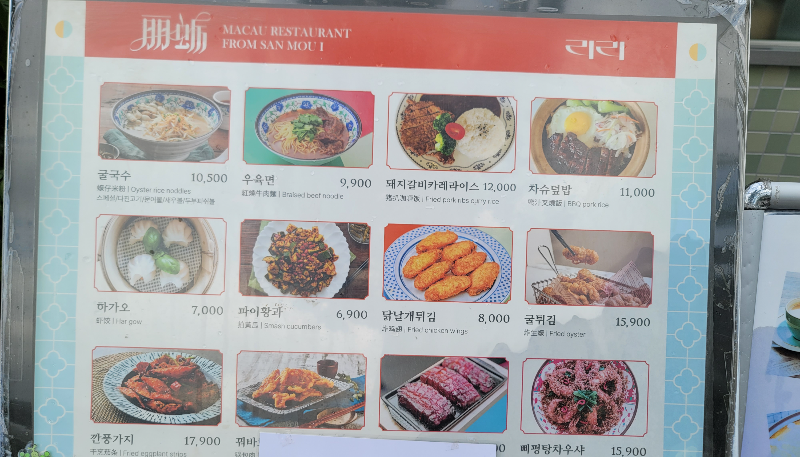 안에서도 메뉴를 볼 수 있지만 밖에서 메뉴판을 봤고요. 홍콩식 요리라 생소할 수 있지만 이렇게 사진과 함께 메뉴가 나와 있어서 고르기에 어렵지 않았습니다.