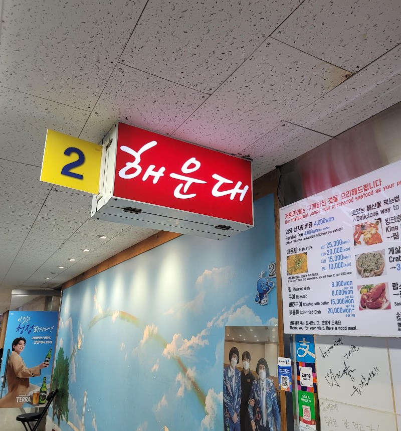 좀 많이 아쉬웠던 점은 다른 곳은 모르겠지만 노량진 해운대 식당은(본관이 아니라 별관이라 그런걸까요?) 별로 친절하지도 않고 아무리 누르고 불러도 직원분들이 오지 않아 몇십 분을 기다리게 만드는 곳이라 다신 안 갈 듯요.