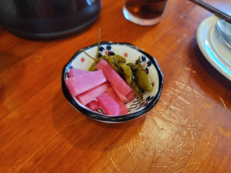 일식집에서 자주 보이는 밑반찬과 앞접시 세팅 후 기다리던 음식이 나왔네요.
