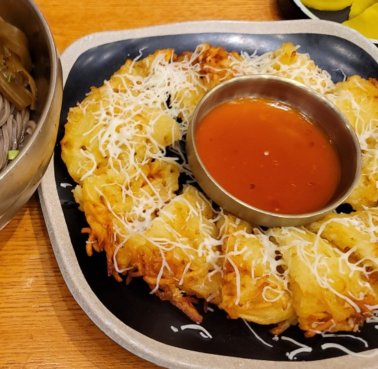 두툼한 감자채 위에 치즈가 “눈꽃”처럼 뿌려져 있어 보는 맛도 있었습니다.