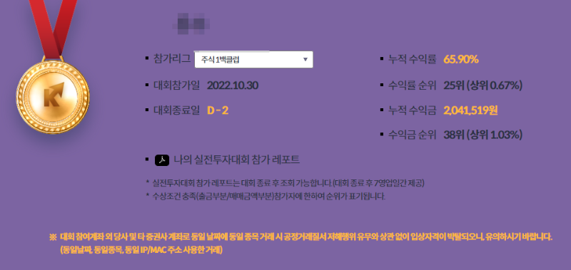 < 키움증권 실전투자대회 참가 내역 >